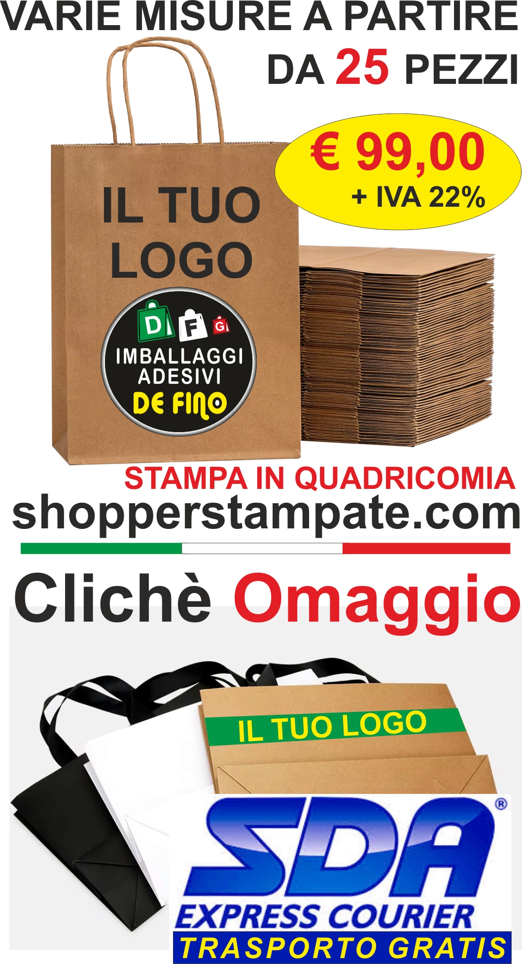 buste Shopper personalizzate 25 pezzi in carta